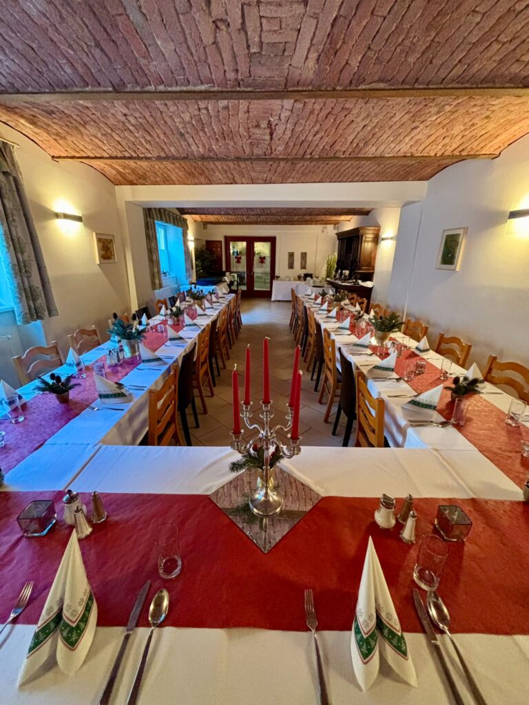 Neben den Räumlichkeiten des Piestros und der Frühstückspension steht dafür auch unser „Gwölb“-Saal und der Turnsaal im 1. Stock zur Verfügung.